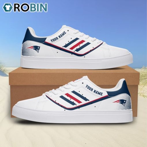 The New England Patriots Personalized Stan Smith Sneakers are a must-have for any die-hard Patriots fan. These sneakers are not your average footwear – they are a personalized and customized piece of sports memorabilia. With the iconic Patriots logo embroidered on the side and your name or initials on the heel, these sneakers allow you to show off your team pride in a unique and stylish way. Made with the highest quality materials, these sneakers are built to last and are perfect for game day or everyday wear.
