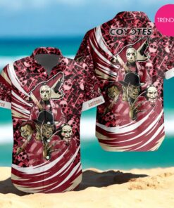 Step into a world where tropical vibes meet the thrilling action of the ice rink with our exclusive Halloween-themed garment. Perfect for hockey fans and Halloween enthusiasts, this shirt combines vibrant Hawaiian aesthetics with the fierce spirit of your favorite Arizona team. Whether you're attending a game, a Halloween party, or simply enjoying a sunny day, this shirt is designed to turn heads and spark conversations. Unleash your team spirit with a splash of spooky fun and showcase your fandom in a way like never before!