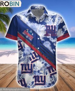 This vibrant Hawaiian shirt is reminiscent of a tropical paradise. The eye-catching hibiscus pattern pops against a deep blue background, adding a touch of island flair to any outfit. With its relaxed fit and lightweight material, this shirt is perfect for warm summer days or a casual beach party. Show off your love for the New York Giants with this unique watercolor design, guaranteed to turn heads wherever you go.