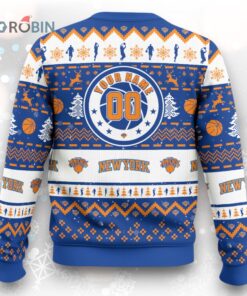 Rock around the Christmas tree in this festive Knicks sweater! Show your team spirit and holiday cheer all in one. A must-have for any die-hard fan looking to spread some joy (and Knick pride) this holiday season. Get yours before they're gone!