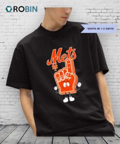Show your Mets pride in style with this unique tee! Rocking a foam finger and celebrating the future, this shirt is a must-have for any die-hard fan. Pair it with your mets crocs for the ultimate game day fit. Get yours now!