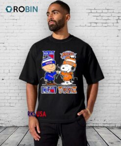 Imagine your favorite Peanuts characters teaming up with iconic New York sports. This design brings Snoopy and friends into the heart of NYC, celebrating both the Rangers and the Knicks in a playful crossover. It’s a perfect nod to fans who love both hockey and basketball, wrapped up in a nostalgic comic style. Wear your team spirit and make a statement. Grab yours now!