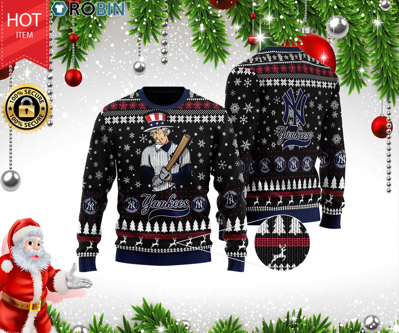 New York Yankees 3D Printed Christmas Wool Ugly Sweater
