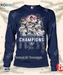 New York Yankees Postseason 2024 AL East Division + ALDS Champions T Shirt details