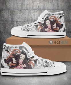 Nezuko Demon Slayer Anime Mixed Manga High Top Canvas Shoes