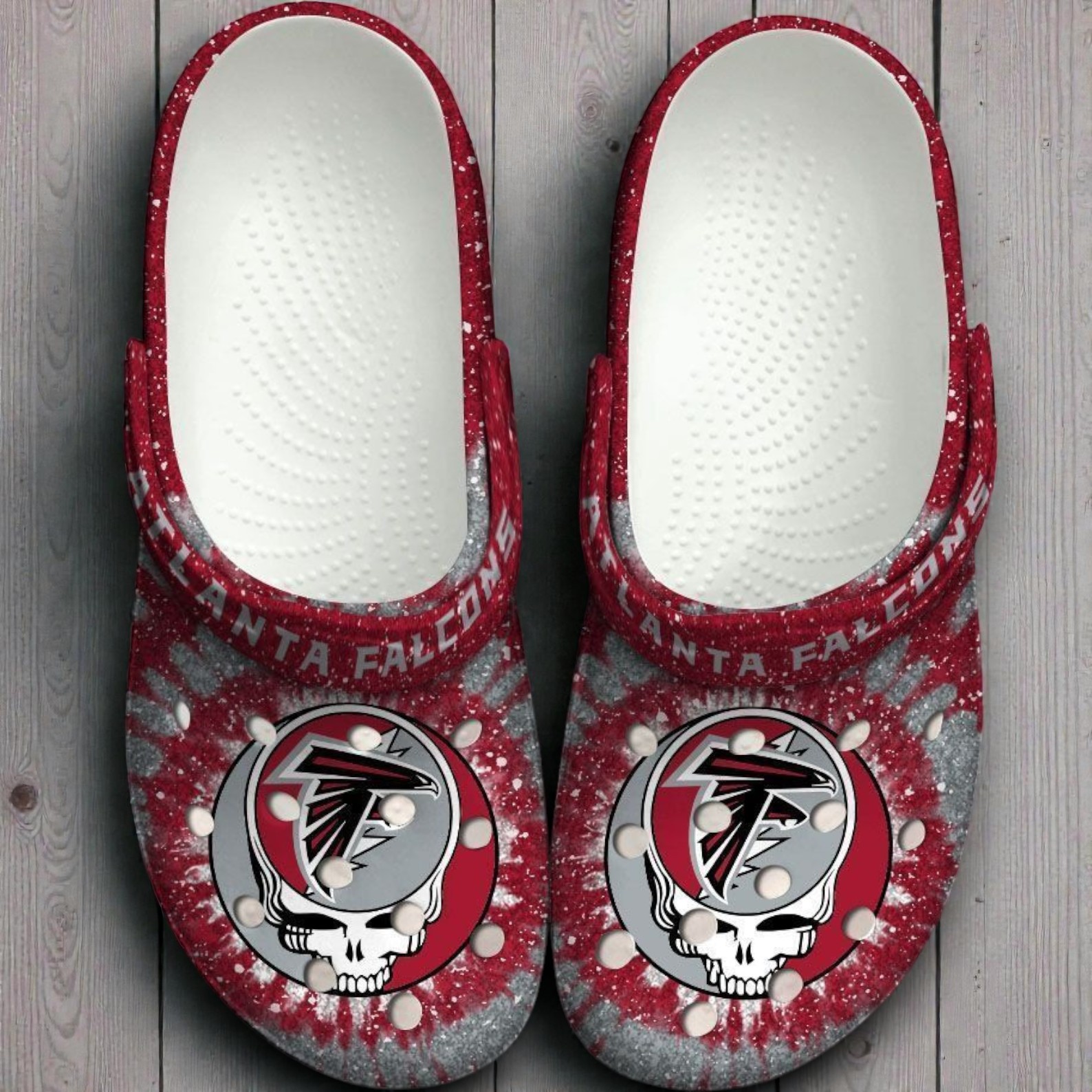 A pair of slippers resting by the door makes more than a practical statement—they speak to who you are the moment you step inside. These Atlanta Falcons slippers bring together the gritty edge of the gridiron and a rebellious streak inspired by psychedelic art. In shades of fiery reds and swirling grays, the tie-dye pattern feels alive, almost like a pulse beneath the iconic Falcons logo positioned over a striking skull motif. The contrast between the intricate skull design and the bold team emblem reflects a kind of bold energy that fans with a rocker spirit, or those drawn to alternative style, can’t help but notice. Inside, the white sole dotted with subtle patterns offers a softer note, hinting at comfort amidst the daring visuals. It’s a blend of passion and playfulness meant for the moments when casual wear meets personal expression. Whether unwinding after a long day of cheering from the stands or gearing up for a weekend with friends, these slippers hold a place in the home of anyone who honors their fandom with a hint of rebellion. For an Atlanta Falcons supporter who leans toward the edgy side, it’s a quiet way to carry that fierce team loyalty everywhere you go, even in the most ordinary moments.