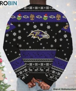 NFL Baltimore Ravens Baby Groot And Grinch Best Friends Ugly Christmas Sweatshirt & Sweater