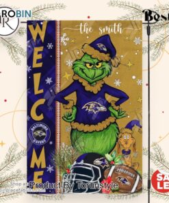 Get into the holiday spirit with our Baltimore Ravens-themed Christmas Garden Flag! Show off your team pride and festive cheer with this unique and customizable flag that features the iconic Grinch design. Personalize it with your own name to make it truly one-of-a-kind. And while you're at it, don't forget to check out our matching Baltimore Ravens sneakers to complete your game day look. Whether you're watching the game or spreading holiday cheer, this garden flag is the perfect way to celebrate the season in style!