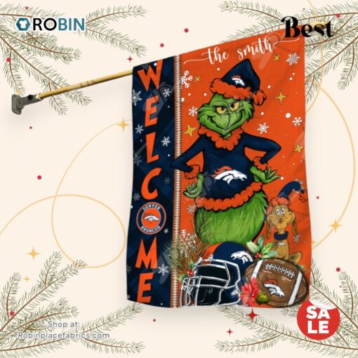 NFL Denver Broncos Football Grinch Welcome Christmas Garden Flag Custom Name