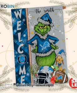 Unveil the perfect blend of holiday cheer and team spirit with our unique garden flag, a must-have for true fans looking to spread both mischief and merriment this season. This vibrant flag showcases a whimsical Grinch design, donning team colors that echo your loyalty to the Lions. Every guest will be captivated by this festive display that also boasts a customizable feature, allowing you to proudly display your family or personalized name. Elevate your garden decor, celebrate the holidays, and roar for the Lions—all at once!