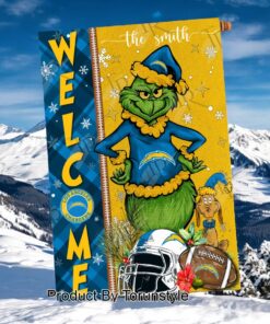 Get into the holiday spirit with this festive Los Angeles Chargers-themed Christmas garden flag! Show off your team pride while adding a touch of Christmas cheer to your outdoor decor. The Grinch design adds a playful twist to the traditional holiday decorations, making it a unique and eye-catching addition to your front yard or garden. Plus, you can customize it with your own name to make it truly one-of-a-kind. Don't miss out on this perfect combination of team spirit and holiday fun!