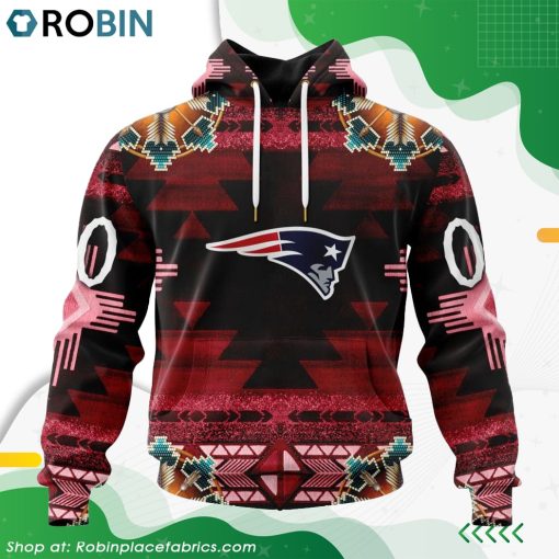The NFL New England Patriots Native American Design Hoodie showcases a unique and intricate design inspired by Native American culture. This hoodie pays homage to the rich traditions and values of the Native American community. The design is bold and vibrant, featuring a mix of traditional patterns and symbols that add a touch of authenticity to the hoodie. It is made with high-quality materials that ensure durability and comfort. This hoodie is not only a stylish choice for Patriots fans but also serves as a respectful appreciation of Native American heritage.