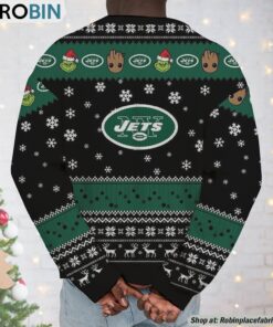 Elevate your holiday wardrobe with a playful twist by embracing our unique Jets shirts featuring your favorite unlikely duo! Dive into the festive spirit with iconic characters like Baby Groot and the Grinch, united in a quirky design that screams fun and fandom. Perfect for those cozy game nights or holiday gatherings, this sweatshirt pairs your love for the New York Jets with a splash of holiday cheer, making it an ideal gift for fans who enjoy standing out in style.
