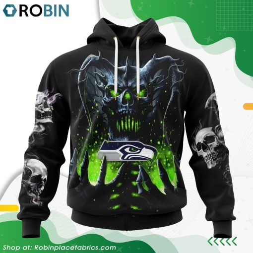 NFL Seattle Seahawks Skull Art Design Hoodie Details