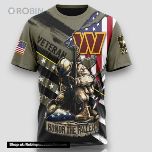 NFL Washington Commanders All Over Print 3D T Shirt Honor Veterans Kneeling Soldier Unisex Tshirt details