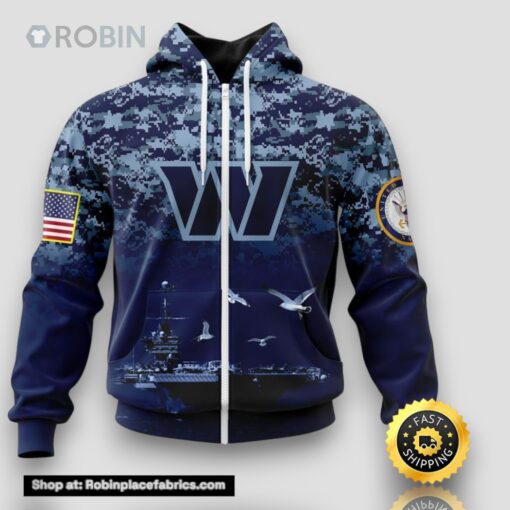 NFL Washington Commanders Zip Hoodie 3D Honor US Navy Veterans Stylish Gear For Fans features