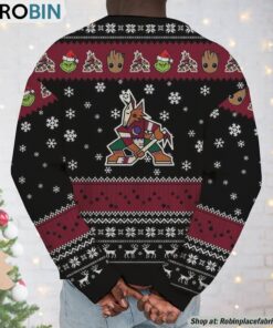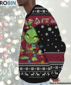 Get ready to score a festive fashion hat trick with this one-of-a-kind holiday apparel that combines whimsical charm with a sporty touch! Perfect for the hockey-loving, pop culture enthusiast in your life, this sweater showcases an iconic duo, blending the mischievous spirit of a certain green holiday character and the adorable antics of a beloved galactic guardian. Don’t settle for ordinary this holiday season; make a bold and playful statement that celebrates team pride, holiday cheer, and a dash of mischief all in one cozy package. Ideal for gatherings, games, or simply lounging in spirited comfort, it's a must-have addition to any fan’s winter wardrobe.
