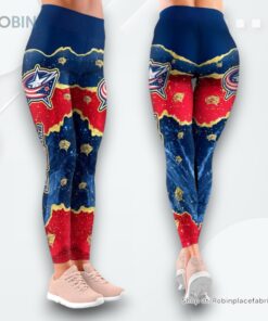 Get ready to show off your Columbus Blue Jackets pride this summer with these stylish and comfortable leggings! Featuring a vibrant floral design, these leggings are the perfect addition to any fan's wardrobe. Made with soft, stretchy fabric, they are perfect for lounging at home or heading out to catch a game. Treat yourself or surprise the Blue Jackets fan in your life with these unique and eye-catching leggings. Don't miss out on this must-have piece of fan gear!