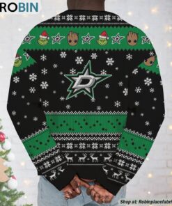 Get ready to celebrate the holiday season in style with a unique blend of fandom and festive cheer! This eye-catching apparel combines two beloved characters in an unforgettable design, perfect for any hockey enthusiast who also loves a touch of holiday magic. Picture Baby Groot and the Grinch teaming up as best friends to bring joy and a little mischief to your festivities. Whether you're watching a game or enjoying a family gathering, this sweater is sure to turn heads and spark conversations. Embrace the holiday spirit while showcasing your team pride in a uniquely charming way that speaks to the playful heart in all of us.