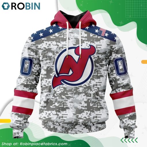 NHL New Jersey Devils Camo Design For Veterans Day Hoodie Details