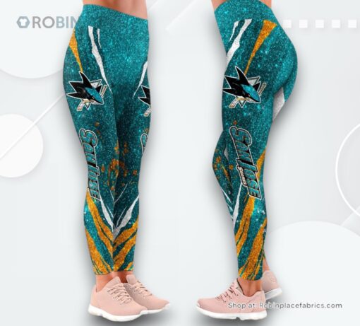 Prepare to elevate your fan gear with these stylish, high-waisted leggings that combine comfort, fashion, and team spirit in one! Perfect for any Sharks enthusiast, these leggings feature a unique floral design woven seamlessly with the iconic team colors and logo. Whether you're heading to the gym, running errands, or cheering at the SAP Center, these leggings offer a flattering fit and standout looks. Show off your Sharks pride in the most fashionable way—your wardrobe will thank you!