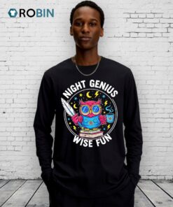 Ever feel like channeling your inner night owl? This vibrant design captures an owl with quirky glasses, surrounded by stars and a touch of wisdom. It’s a reminder that learning can be filled with fun and inspiration, even when the sun sets. Perfect for those who embrace the magic of both knowledge and creativity. Add a spark to your wardrobe with this unique piece!