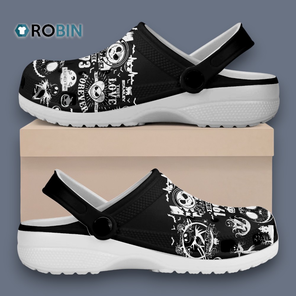Spooky season just got comfier! These black clogs featuring the Pumpkin King himself are perfect for Halloween and beyond. Lightweight, durable, and oh-so-stylish. Get yours now and step into Halloween Town!