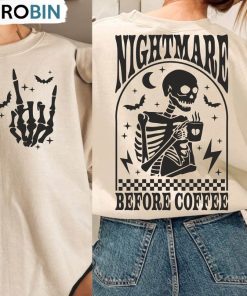 Nightmare Before Coffee Halloween Shirt, Skeleton Coffee Short Sleeve Crewneck details