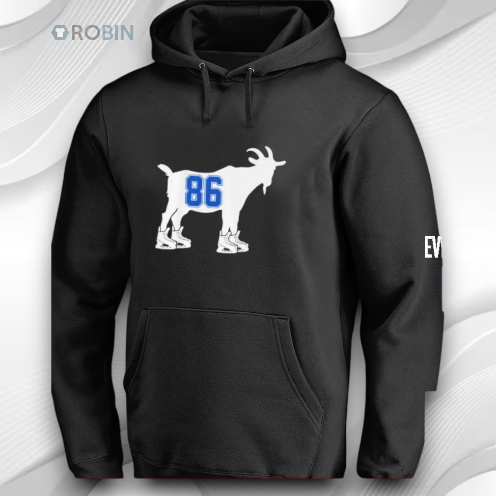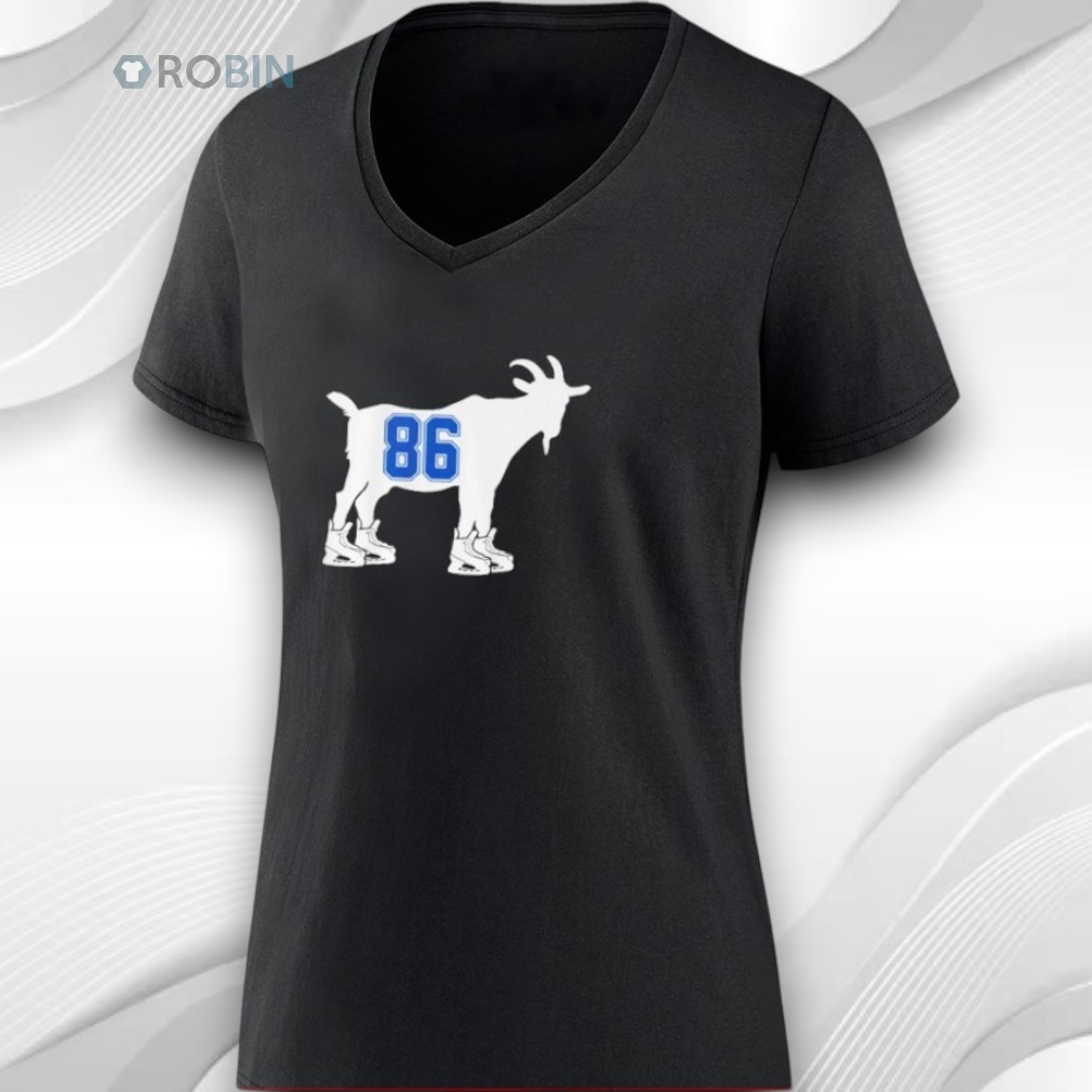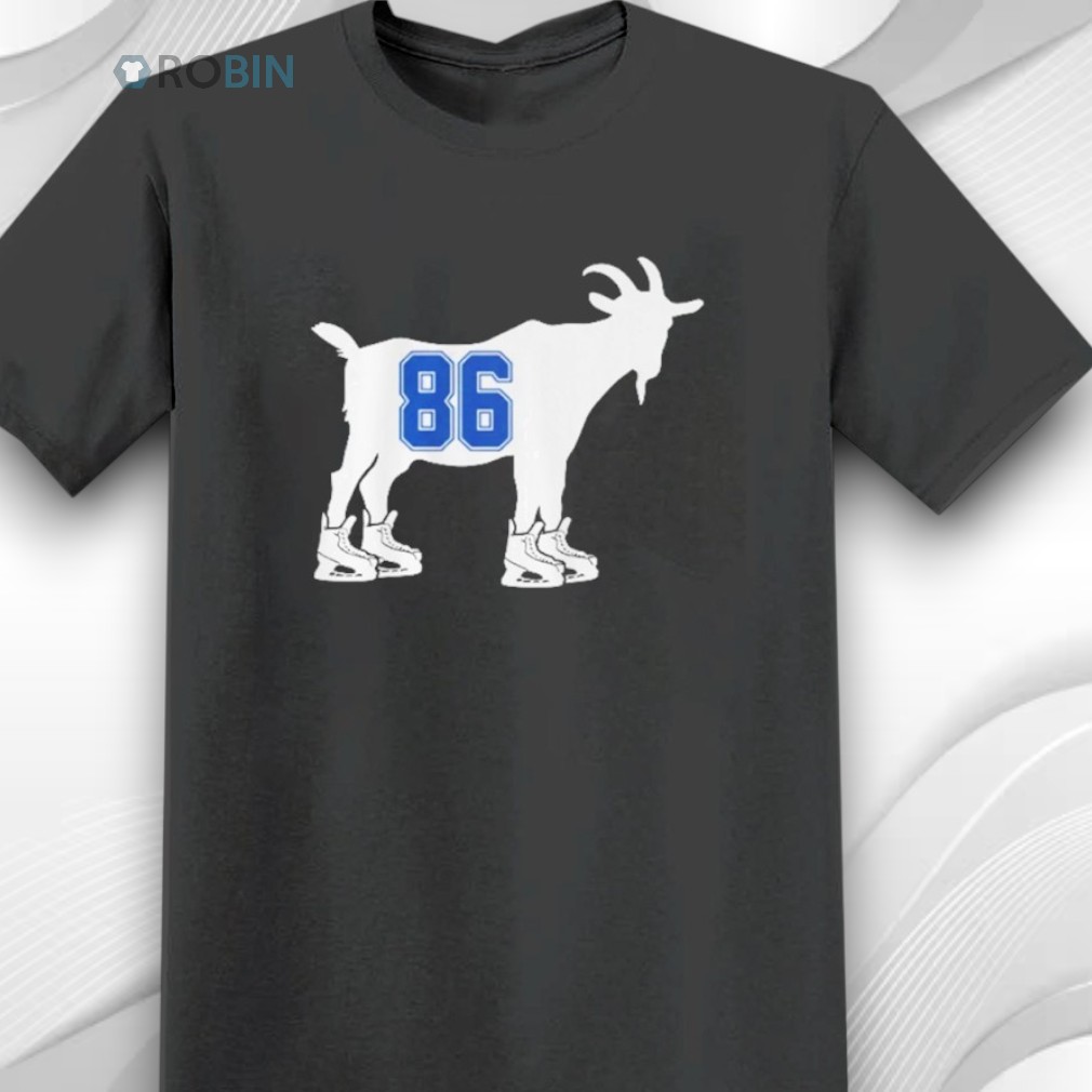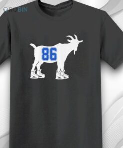 Celebrate one of hockey’s greatest superstars with this bold Nikita Kucherov “GOAT 86” T-shirt. Featuring a powerful goat silhouette — the universal symbol of Greatest of All Time — paired with number 86, this design proudly honors Kucherov’s legendary impact on the Tampa Bay Lightning.