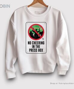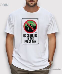 Are you tired of boring, plain shirts that don't make a statement? Look no further than our exciting new design! This unique shirt is perfect for the sports enthusiast or journalist in your life. With a clever and eye-catching slogan, this shirt is sure to turn heads and spark conversations. Show off your love for sports and style with our No Cheering In The Press Box Shirt today!