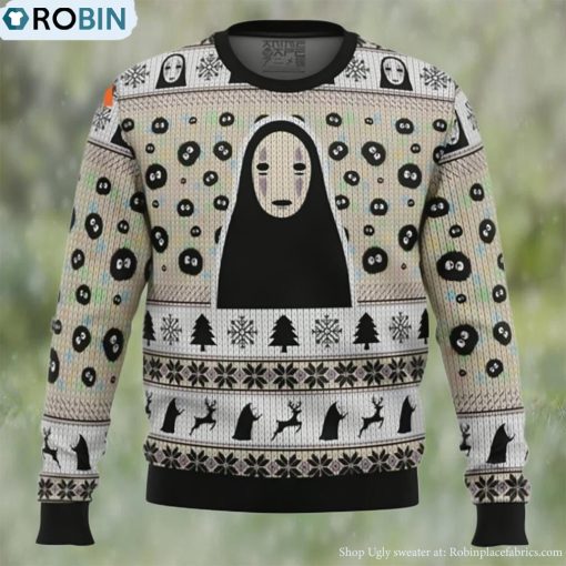 The No Face and Soot Sprites Spirited Away Sweater is a delightful and festive addition to your holiday wardrobe. Inspired by the beloved Studio Ghibli film, Spirited Away, this ugly Christmas sweater features the iconic character, No Face, surrounded by Soot Sprites. The design captures the whimsical and enchanting spirit of the movie, with its vibrant colors and playful imagery. Made with high-quality materials, this sweater is both comfortable and durable. Whether you’re attending a holiday party or having a cozy day at home, this sweater is the perfect way to showcase your love for Studio Ghibli and spread some Christmas cheer.