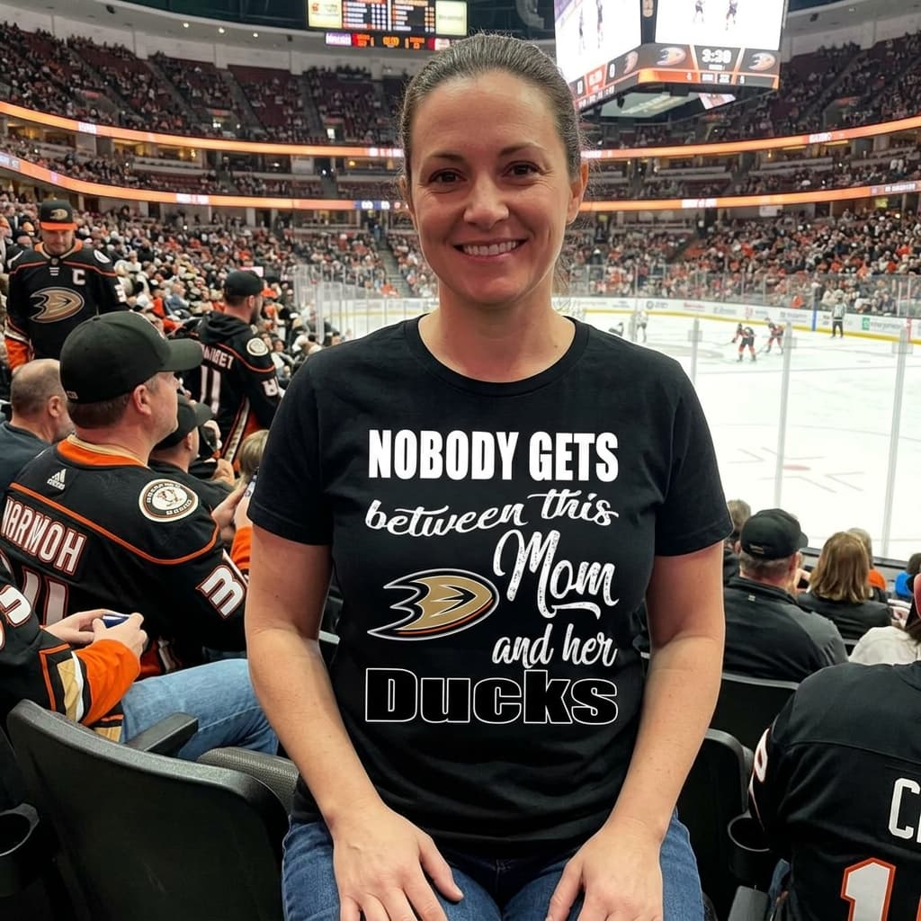 Nobody Gets Between Mom And Her Anaheim Ducks Unisex Shirt