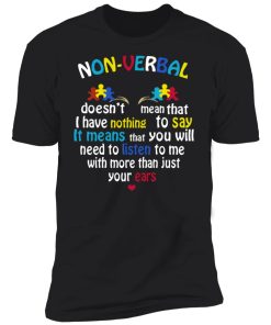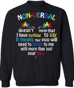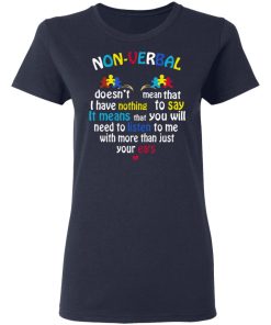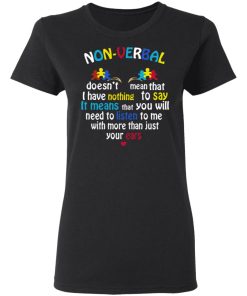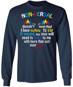 Non verbal doesn’t mean that I have nothing to say it means shirts. Available in t shirt, long sleeve, tank top, hoodie, sweatshirt and multiple color. If you want in another color please contact us.