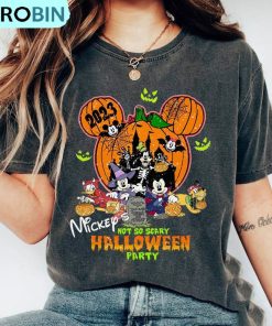This Halloween-inspired shirt features Mickey and Minnie Mouse, giving it a playful and festive vibe. Perfect for celebrating the season, the design is fun and not too scary, making it suitable for all ages. Available in different styles such as tees, hoodies, and sweatshirts, this shirt is a great choice for attending Halloween parties or simply showing off your love for Disney characters during this spooky holiday. Its comfortable fabric and versatile options make it an ideal addition to any Halloween wardrobe.