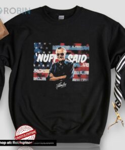Are you a fan of the legendary comic book writer and creator Stan Lee? Then you'll love this unique and stylish shirt featuring his iconic catchphrase Nuff Said alongside the American flag design for the year 2024. Show off your admiration for this comic book legend while staying on-trend with this one-of-a-kind shirt. Perfect for any Stan Lee enthusiast or Marvel fan, this shirt is sure to turn heads and spark conversations wherever you go. Don't miss out on adding this must-have piece to your collection!
