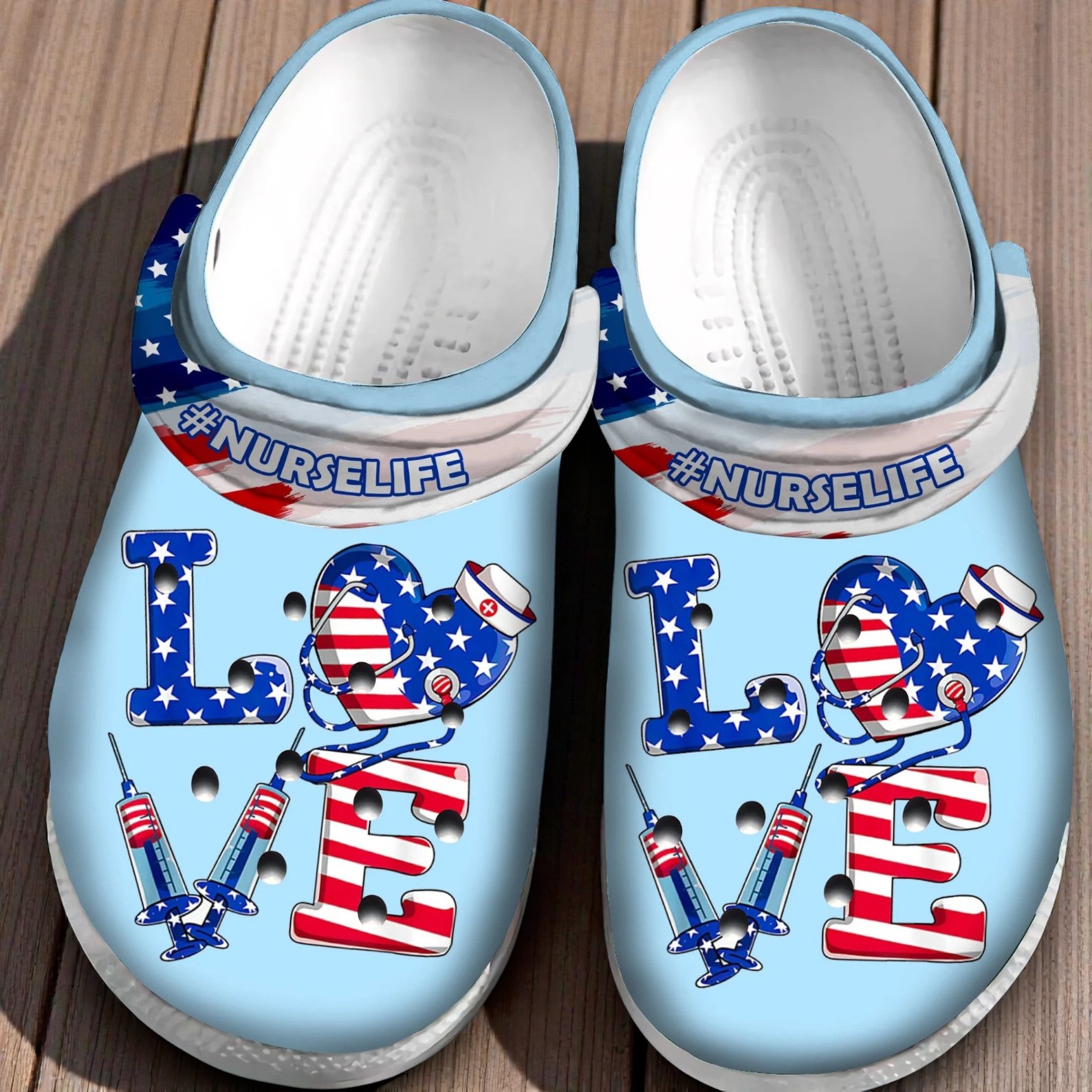Treat your feet to the comfort they deserve. Order your Patriotic Nurse Life Crocs today.