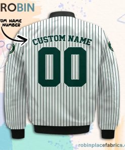 Oakland Athletics MLB Uniform Stripes Custom Name Number Leather Bomber Jacket imamges