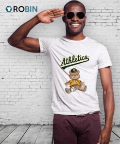 Show your love for the green and gold with this adorable tee! Featuring a cuddly bear rocking the team's colors, it's the perfect way to cheer on the Oakland Athletics. Get yours today and let your spirit shine!