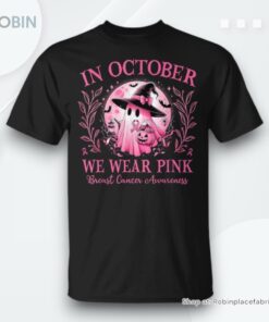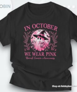 October We Wear Pink Breast Cancer Awareness Halloween Ghost Shirt