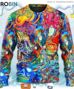 Octopus Lover Colorful Art Style Christmas Ugly Sweater, Sweatshirt