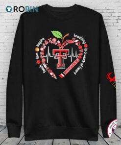 Official Texas Tech Red Raiders Teach Love Inspire Teaching Is A Work Of Heart Apple Shirt
