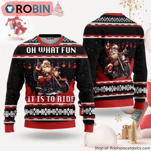 Oh What Fun It Is To Ride Santa Drive Motorbike Ugly Christmas Sweater details