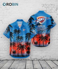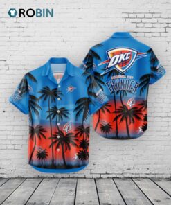 Show your Thunder pride with this vibrant Hawaiian shirt! Featuring coconut trees and team colors, it's perfect for game days, BBQs, or just relaxing. Get yours now and bring some island vibes to OKC! 🌴🏀⚡️