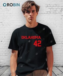 Show your support for an amazing athlete! Gear up and represent your favorite Sooner. This comfortable and stylish shirt is the perfect way to cheer on number 42! Get yours today and show your pride. Boomer Sooner!