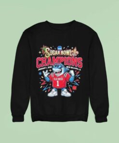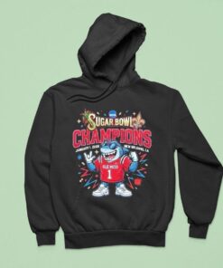 A vibrant mascot cartoon bursts across the chest, its lines thick and energetic against a backdrop of deep red and navy blue that honor the Ole Miss Rebels’ iconic colors. The typographic treatment demands attention—arched boldly over the imagery, the word CHAMPIONS stands out in a strong display font, giving a feeling of triumph and celebration. Beneath it, “Sugar Bowl” and the date January 1 2026 appear in playful script, wrapping around the design like a banner, grounding the excitement in a specific moment of victory. This shirt doesn’t whisper fandom; it shouts it confidently. The layered celebratory graphics convey more than just a win—they capture a community’s pride wrapped up in a single snapshot of college football history. There’s an athletic vibrancy here, something lively and playful that suits a game day energy or an informal post-season gathering. Pair it with classic dark jeans and sneakers, or toss on a varsity jacket for a look that feels put-together yet relaxed. The unisex cut allows for easy layering, making it versatile whether thrown over a long sleeve or worn solo in warmer weather. It’s a wardrobe piece for someone who wears their team spirit comfortably but without hesitation. Fans who carry the Rebel spirit year-round, or anyone who cherishes this Sugar Bowl victory as a defining college football moment, will find this design resonates deeply. As gift material, it offers a thoughtful nod to shared excitement and the thrill of being part of a team’s celebrated journey. Sugar Bowl Champions Ole Miss enthusiasts will appreciate how art and athletic pride come alive on this shirt.