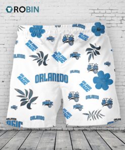 Show your team spirit while soaking up the sun! These tropical-themed shorts feature vibrant colors and a fun Hawaiian print. Perfect for game day or beach days. Get yours now and bring some Magic to your summer wardrobe! ☀️🏀🌴