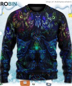 Owl And Witch Darkness Colorful Christmas Ugly Sweater, Sweatshirt details
