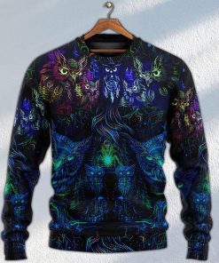 Add some spooky charm to your Christmas wardrobe with this Owl and Witch Darkness Colorful Christmas Ugly Sweater Sweatshirt. This unique sweatshirt features a festive design that combines the whimsical elements of owls and witches with the traditional colors of Christmas. The vibrant colors of the design add a pop of holiday spirit to any outfit, while the cozy and comfortable sweatshirt material keeps you warm throughout the winter months. Perfect for ugly sweater parties or simply adding a touch of festive fun to your everyday attire, this sweatshirt is a must-have for any holiday enthusiast.