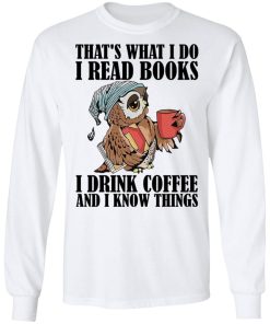Owl That’s What I Do I Read Books I Drink Coffee And I Know Things shirt. Available in t shirt, long sleeve, tank top, hoodie, sweatshirt and multiple color. If you want in another color please contact us. Quality control before delivery. Print: Digital printing, colors won’t fade or peel. The design is printed with new age printing technology. It is printed with a water – soluble and eco – friendly ink. Treat yourself, or make this shirt the perfect gift on birthdays, anniversaries, holidays, or give a gift to friend, yourself, or family, or for no reason at all.