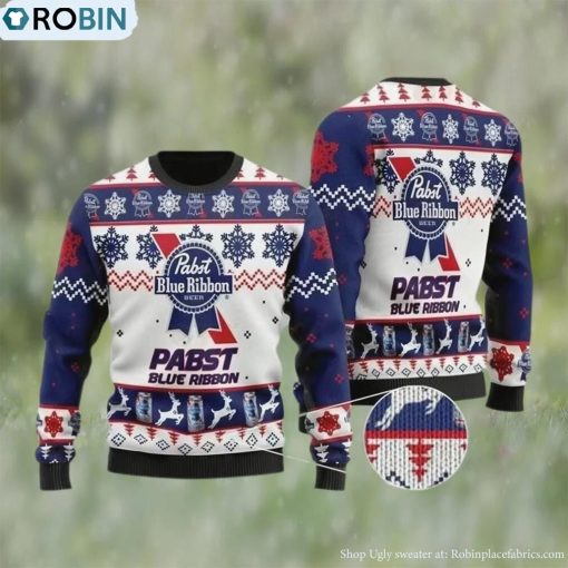 Pabst Blue Ribbon Beer Ugly Christmas Sweater Gifts For Beer Lovers details
